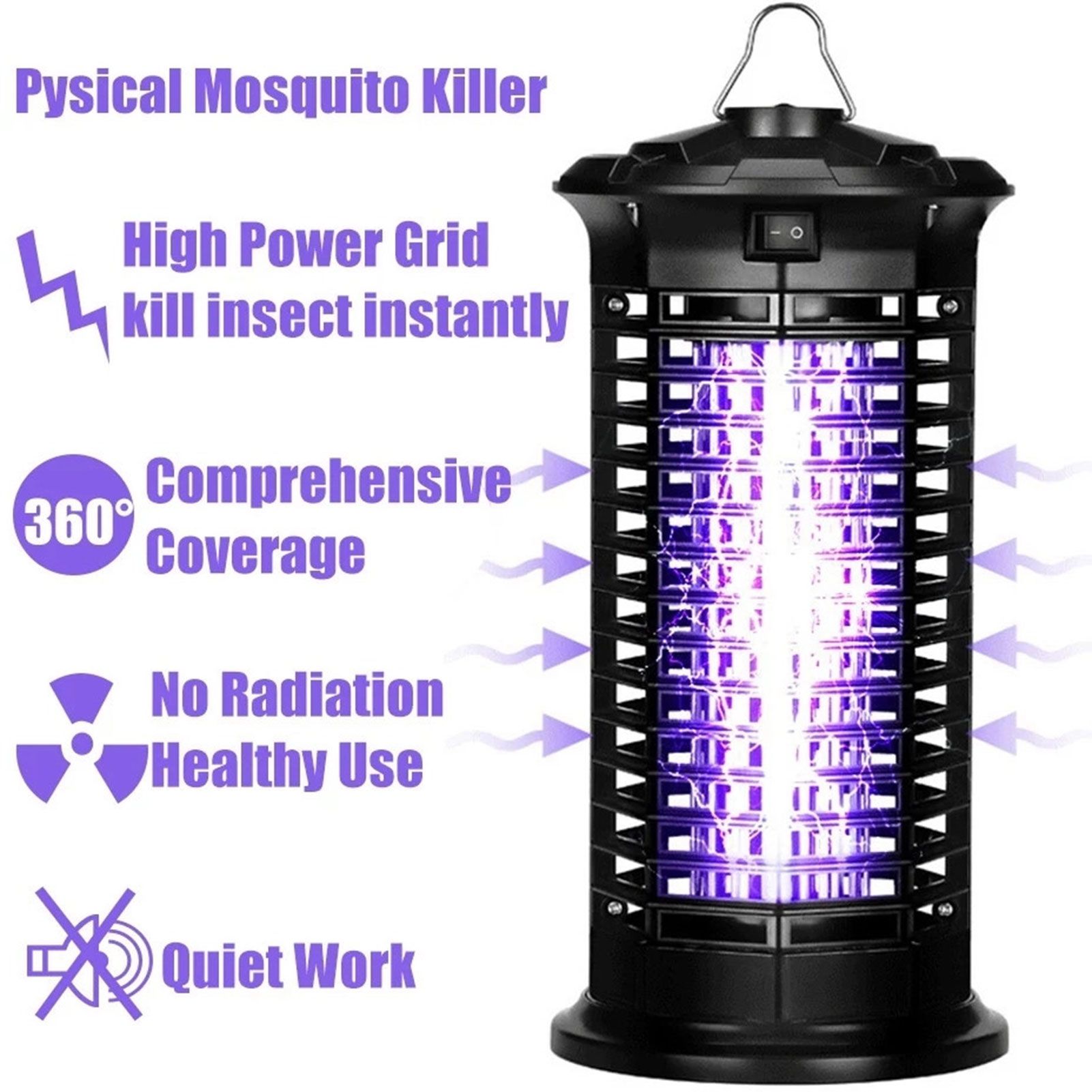 Domestic use insect-repelling lamp, long work time with low consumption, low work voice, bionic purple light waves 360° lighting improve trapping efficiency, safety grille net cover, prevent accidental electric shock, delicate practical.