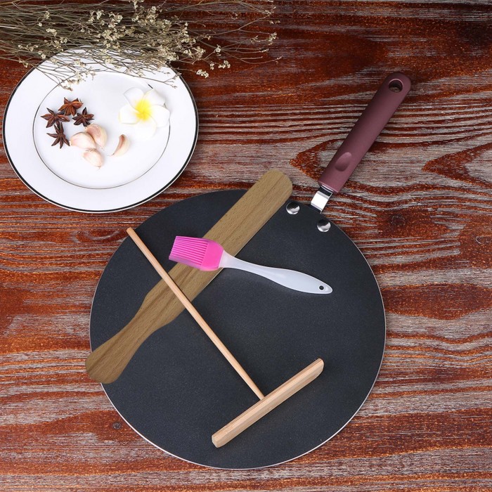 Comes with a 9" Spreader and a 11" Spatula for spread and pick up the crepe.