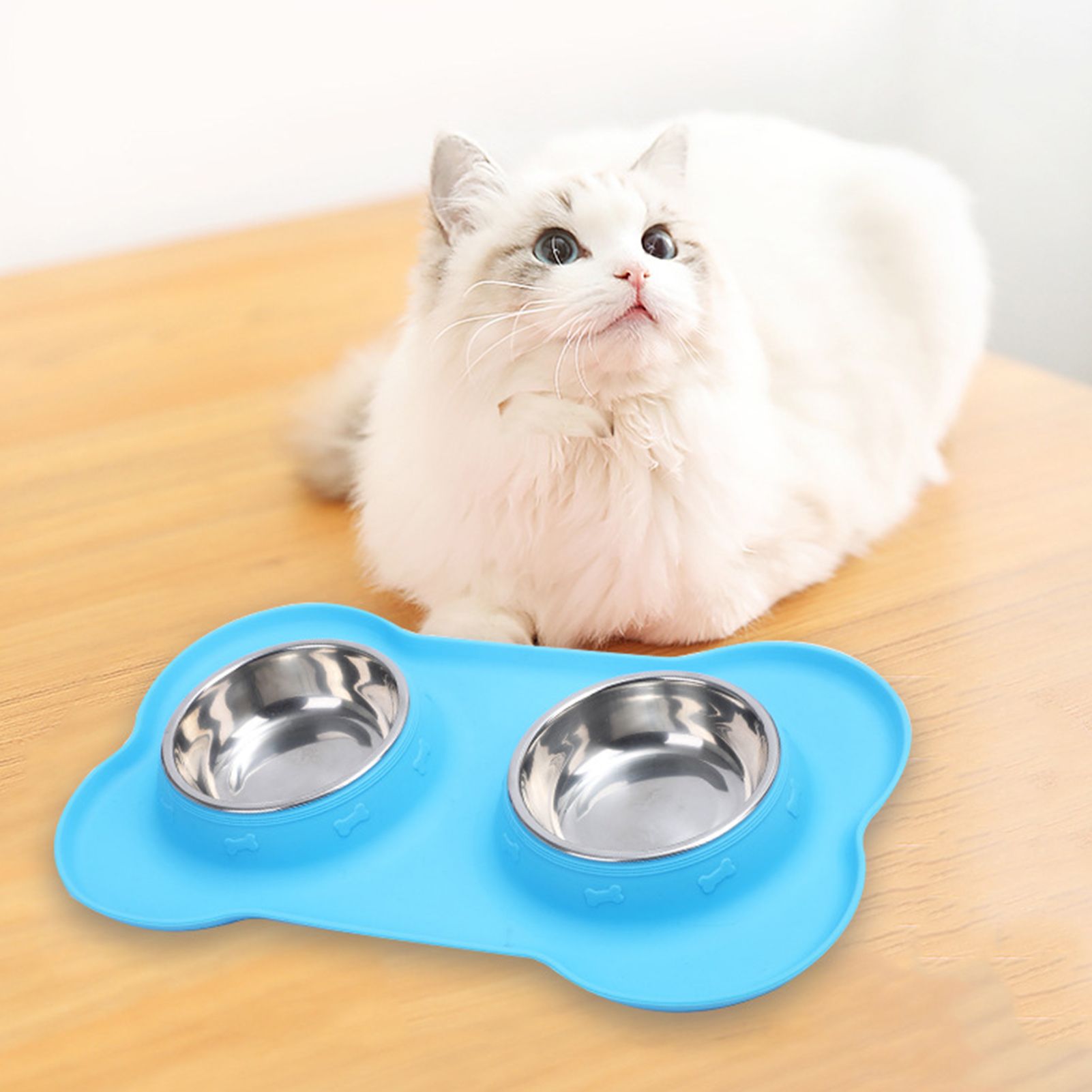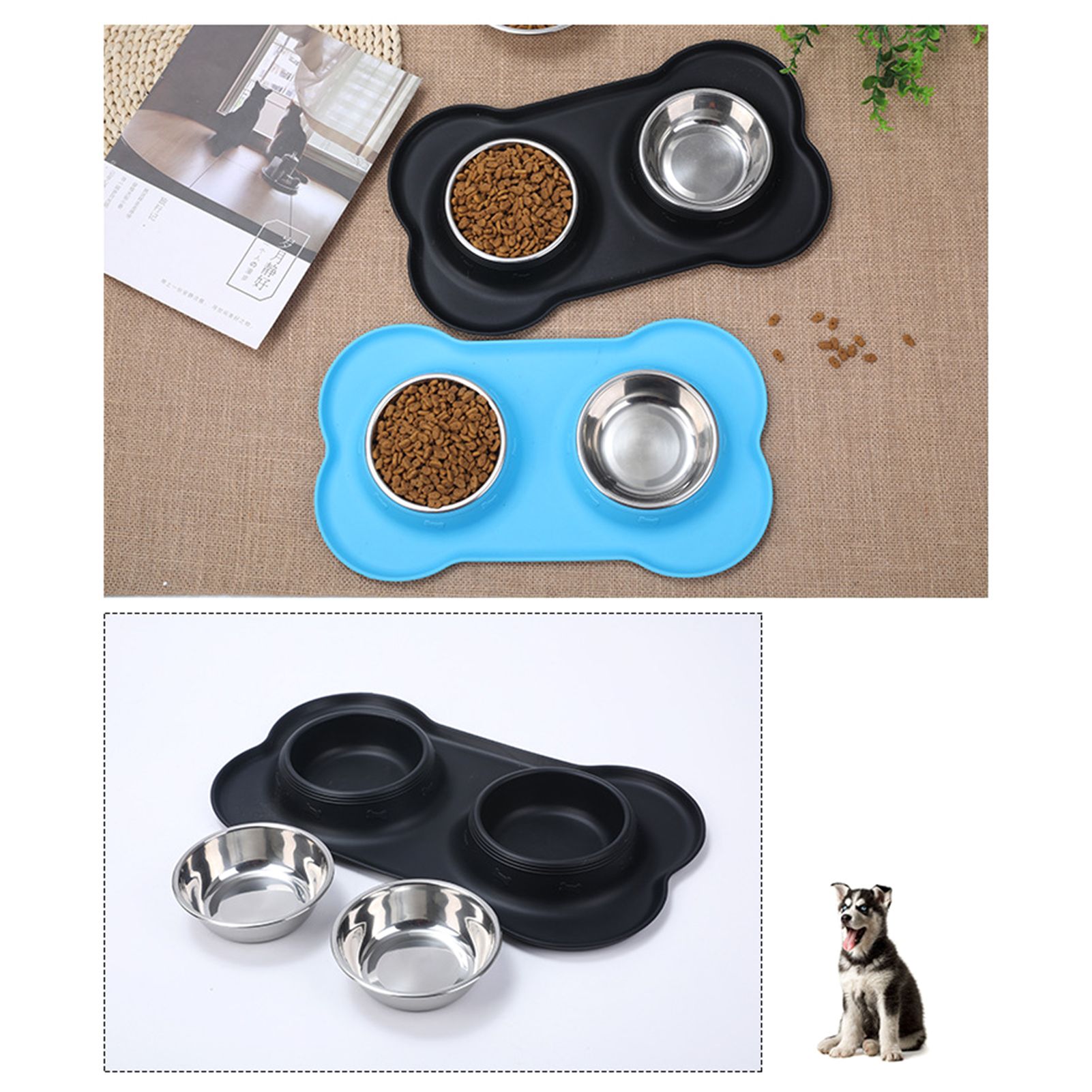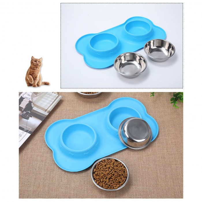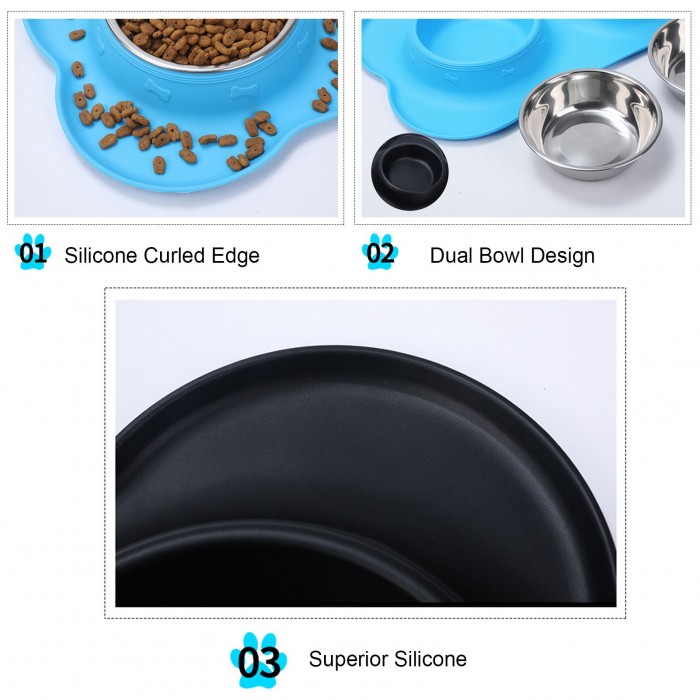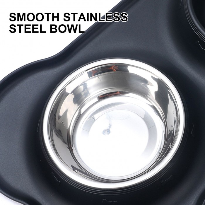 Non-skid silicone on bowl bottom prevents pets from sliding and tipping when eating.