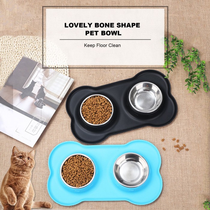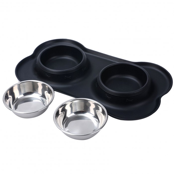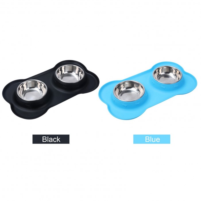 Dual bowl design, one is for water, the other is for food.