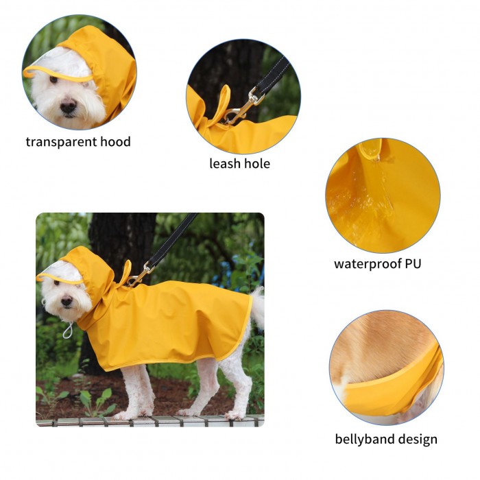 The adjustable hood and belly band design can prevent a dog's head and belly from getting wet in heavy rain.