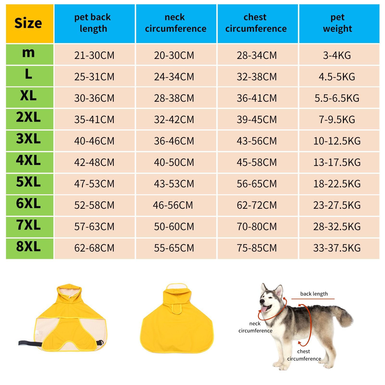 Dog Raincoat with Hood Water-resistant Dog Rain Poncho with Leash Hole Dog Rain Jacket for Small Medium Large Dogs 5XL Size