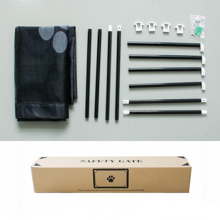 The gate is built with tough partially see-through woven mesh fabric woven to withstand abuse from pets. Perfectly to your home and decor, with a simple, but elegant design.