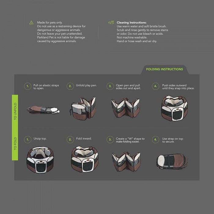 The Pet Playpen is an easy-open, pop-up tent that can be assembled - and put away - within minutes; its flexible construction makes it highly portable, which is perfect for outdoor activities such as hiking, camping, and picnicsWaterproof, scratch resistant and washable.