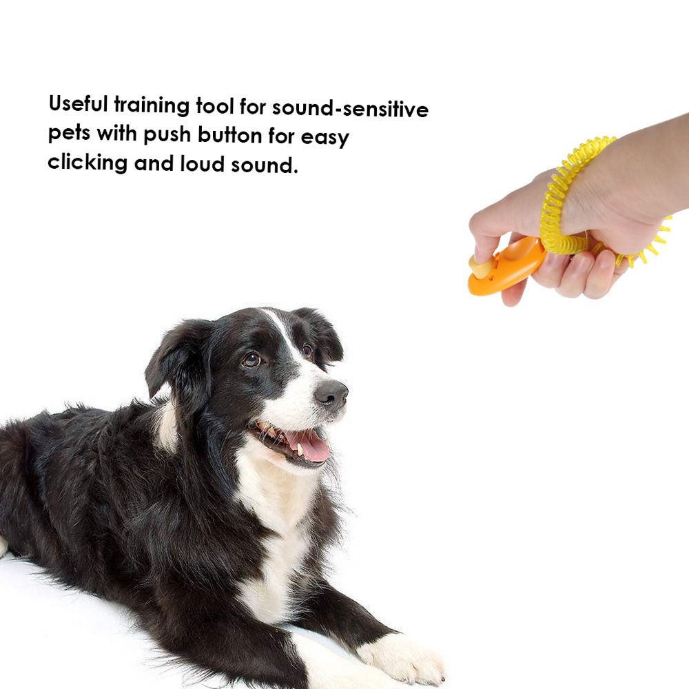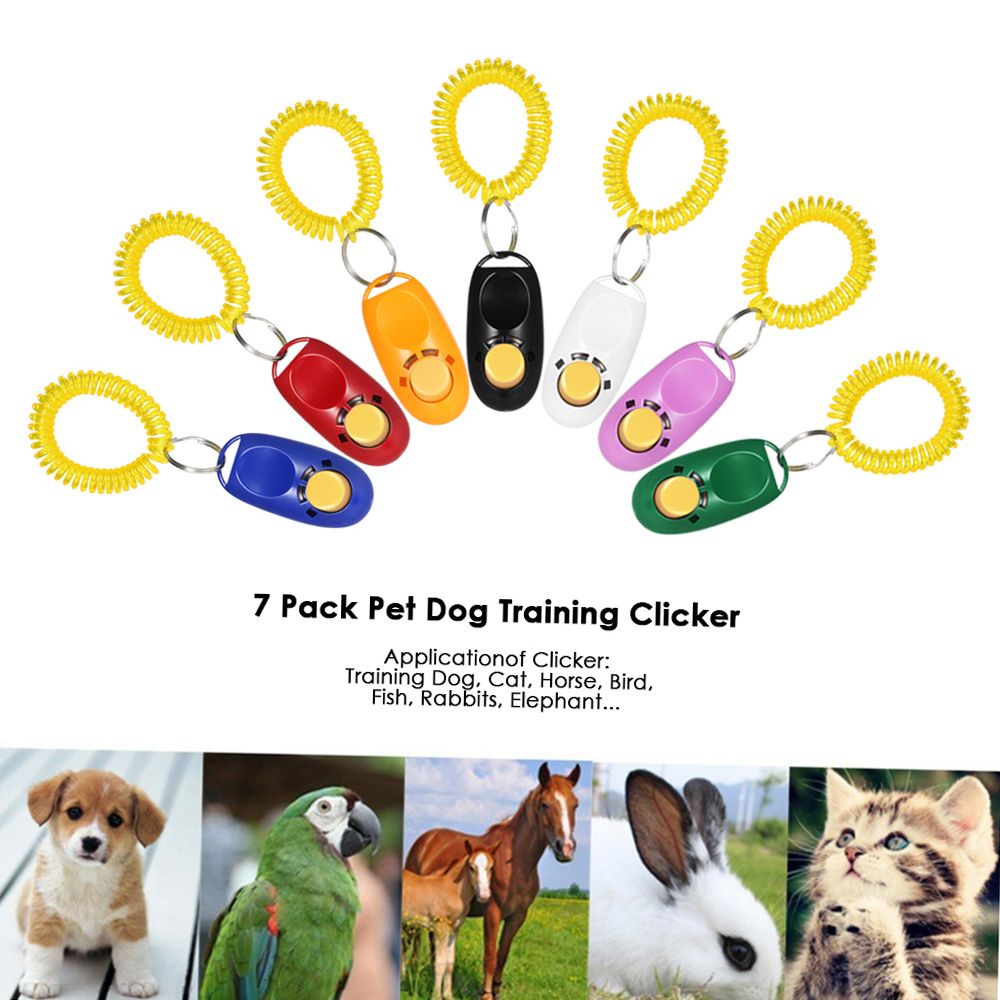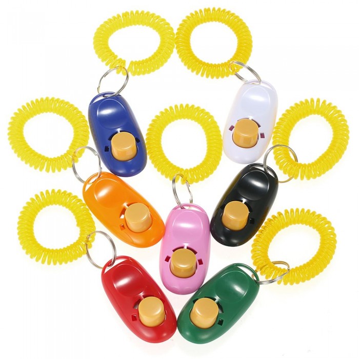 A dog training clicker can be an effective tool for teaching your dog to follow your commands, such as calling him to you, sitting or going in a new direction. Come in a pack clickers with wrist straps in 7 different colors: pink, white, green, orange, red, black, blue. You can train your dog for basic obedience, small trick, and correct the bad behavior with scientific method of training. Useful training tool for sound-sensitive pets with push button for easy clicking and loud sound.