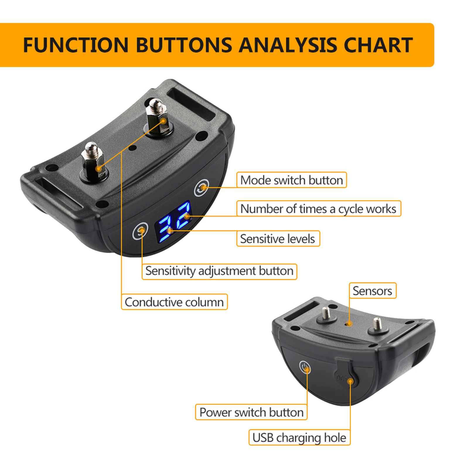 Smart sensors: Our bark collar is equipped with smart sensors and chips, which can precisely identify your dog's bark, making the activation more effective.