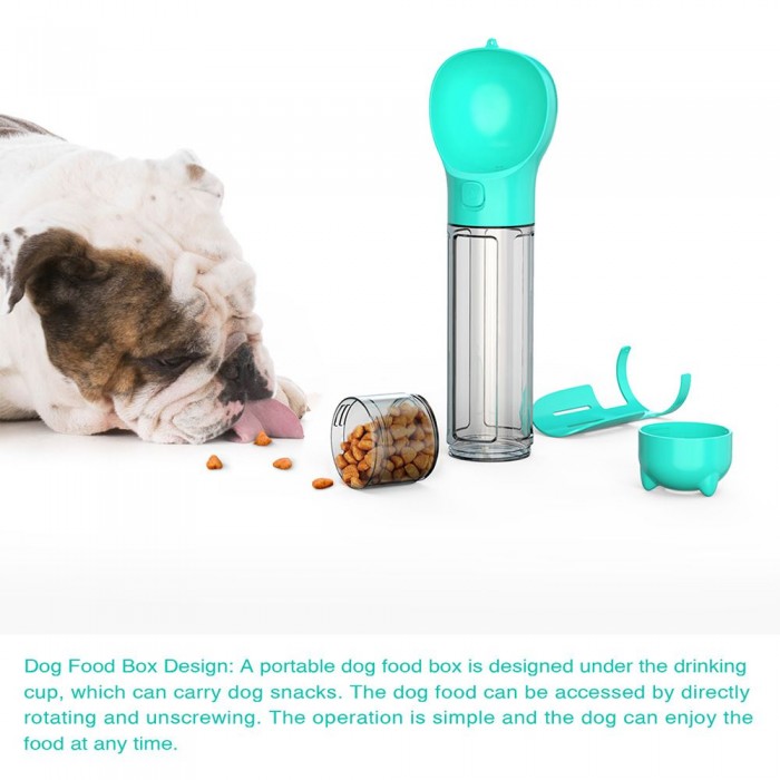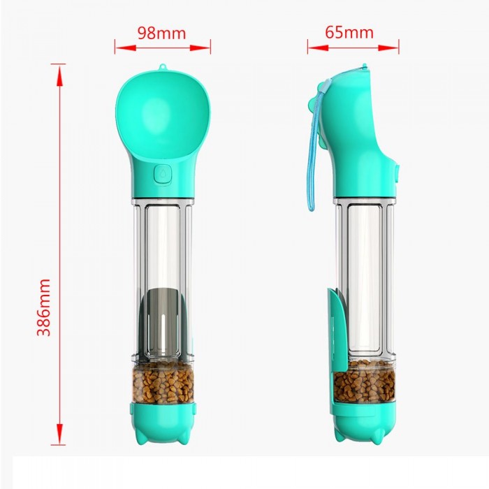 The pet water bottle has 4 functions, which integrates multiple functions such as a portable drinking cup, a poop shovel, a garbage collection bag, and a pet food box. It's your pet's good choice for outdoor travel.
