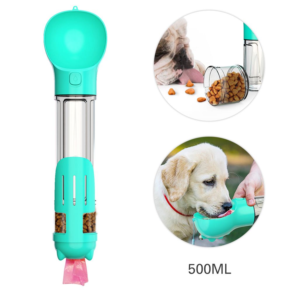Multifunctional design: This pet water bottle has 4 functions, which is used as a portable drinking cup, a poop shovel, a garbage collection bag, and a pet food box.