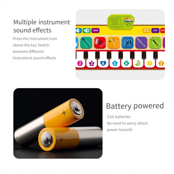 【EASY TO POWER】Powered by 3*AA Battery(Not Included). Electronic music carpet is sensitive to touch, it can be automatically recognized even children not touch the accurate target. Colorful piano mat with cute patterns, making it more attractive to kids.