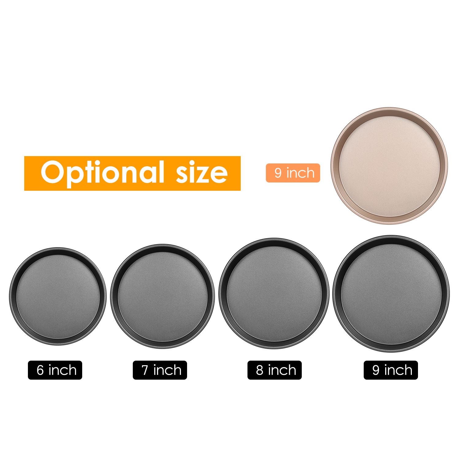 Optional 4 Size -- High-quality black bakeware with 4 optional size include 6/7/8/9 inch sizes, which can meet your needs for making pizzas of different sizes, and is very suitable for home ovens or pizza ovens cooking homemade pizza.
