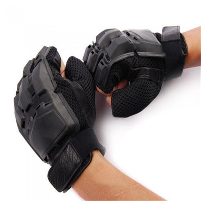 Constructed of ventilate material and hard soft plastic half-finger gloves, easy for movement.