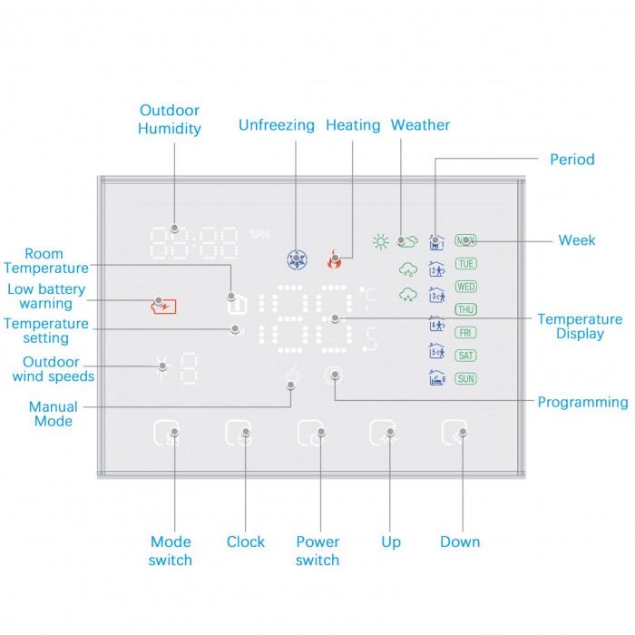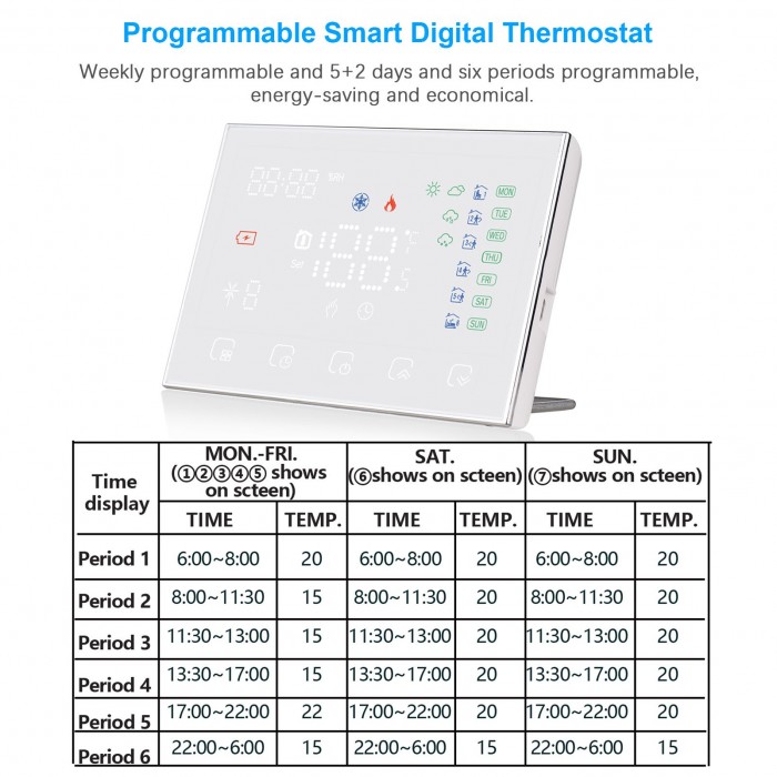 [Smart Programmable Thermostat] Weekly programmable and 5+2 days and six periods programmable, energy-saving and environmentally friendly, intelligent and economical.