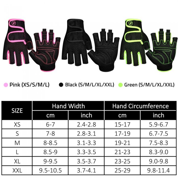The gloves are made from breathable mesh fabric and shock-absorption SBR padding to ensure superior comfort and performance. The 3/4 finger design allows for free movement of fingertips, great for cycling, fishing, sailing, climbing, paddling, gym, fitness, workout, and other sports.