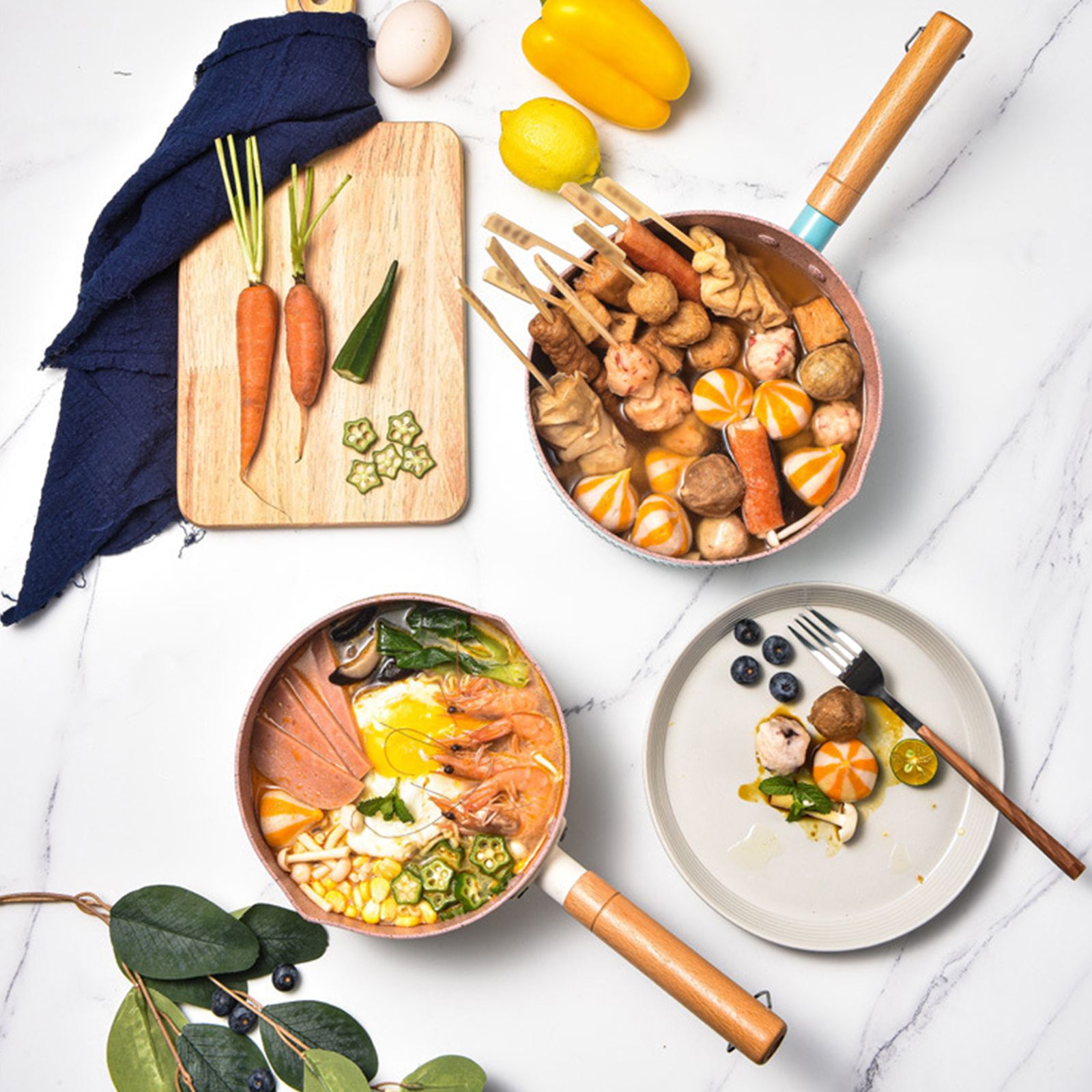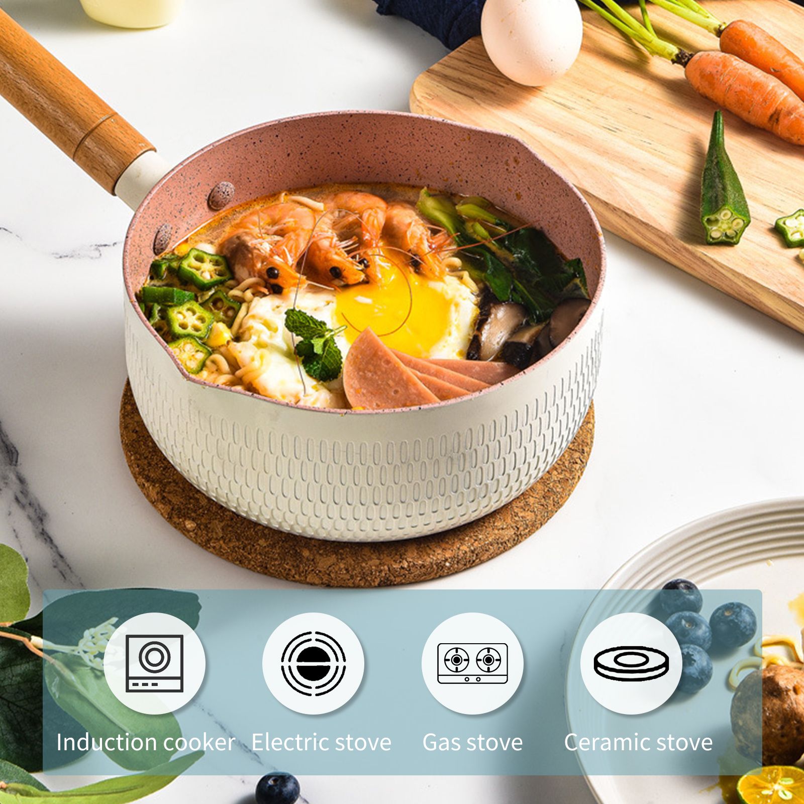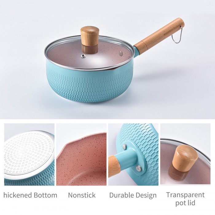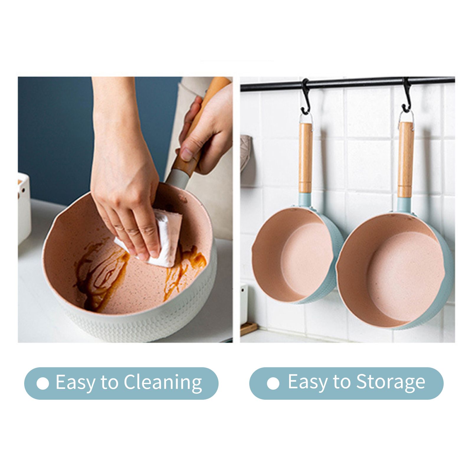 The saucepan is light and handy, making it very easy to use. The non-stick coating makes food not stick to the pan and easy to clean. Please clean the pan with soft sponges. Suitable for induction cooker, electric ceramic stove, gas stove, and furnaces.