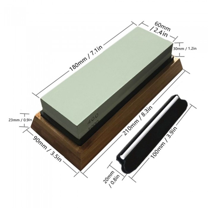 Dual grit whetstone 400/1000, coarse and fine combination. Soak the whetstone in water for about 15 minutes before sharpening.