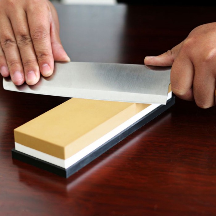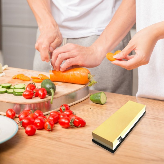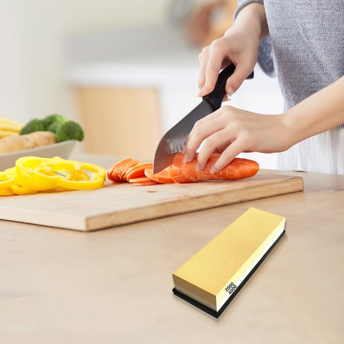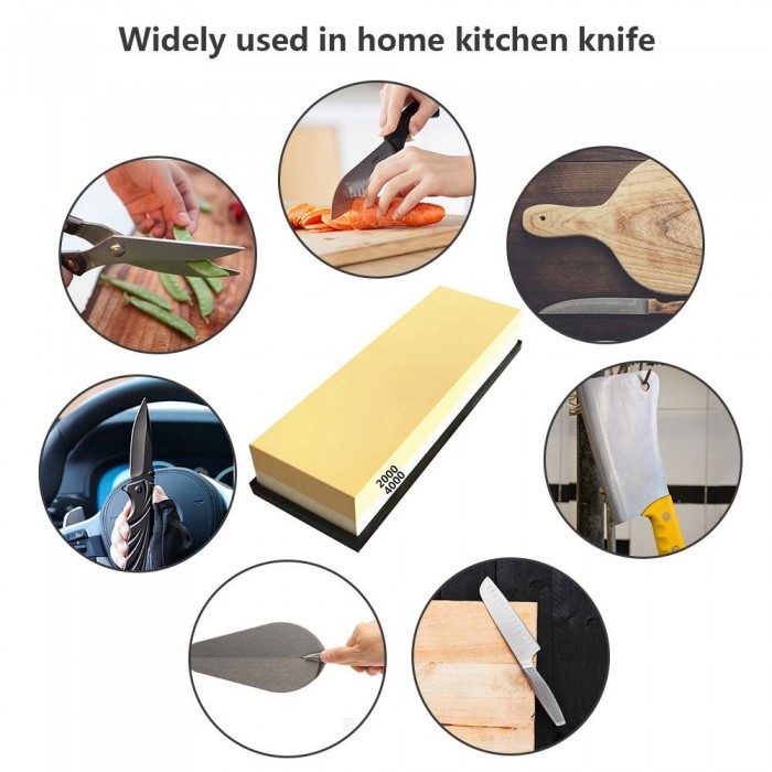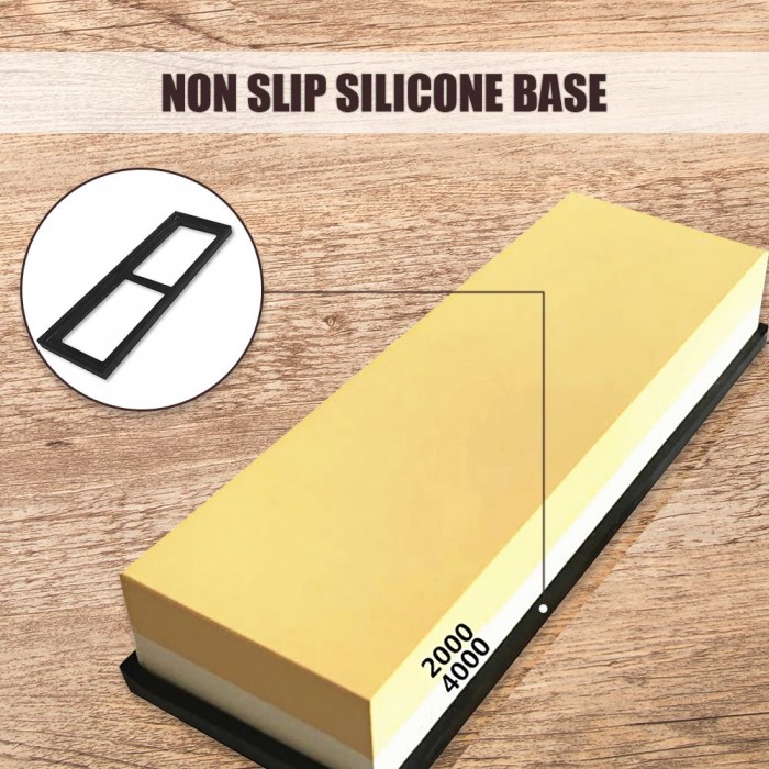 Dual grit whetstone 2000/4000, coarse and fine combination. Soak the whetstone in water for about 15 minutes before sharpening.