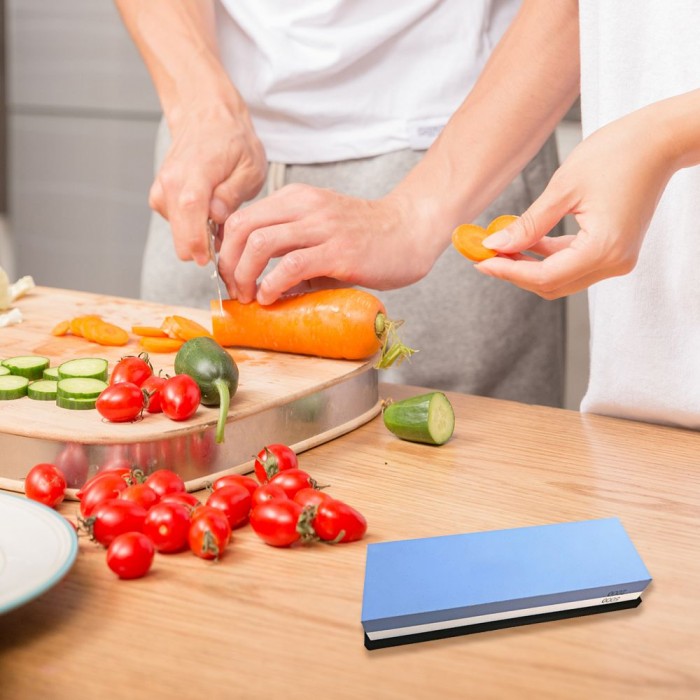 Dual grit whetstone 2000/5000, coarse and fine combination. Soak the whetstone in water for about 15 minutes before sharpening.