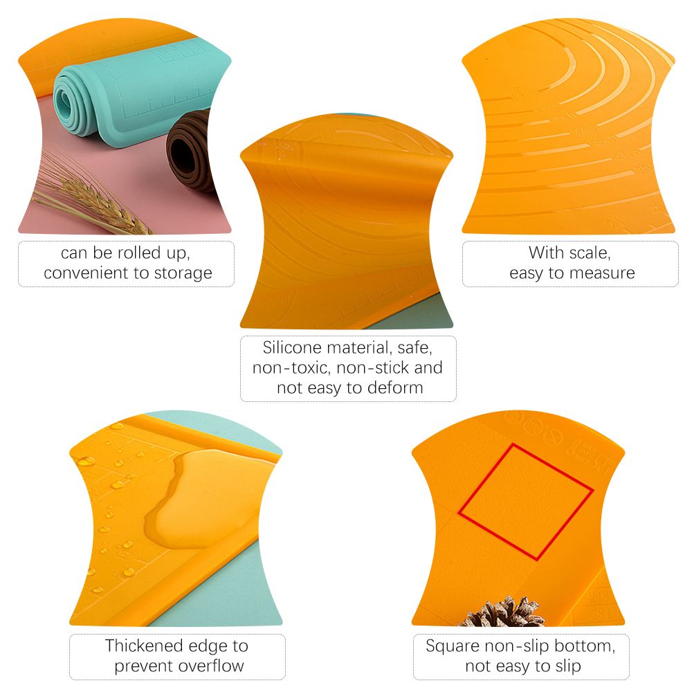 It is convenient for rolling dough with this silicone pastry mat, with scale, easy to clean and easy to storage. Anti-overflow design prevent water overflow to countertop, it is a good tool for rolling dough.