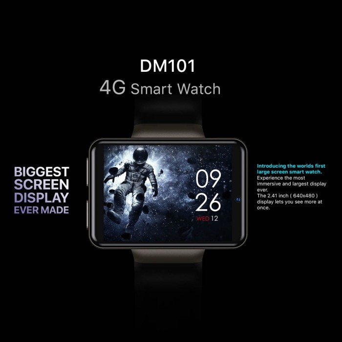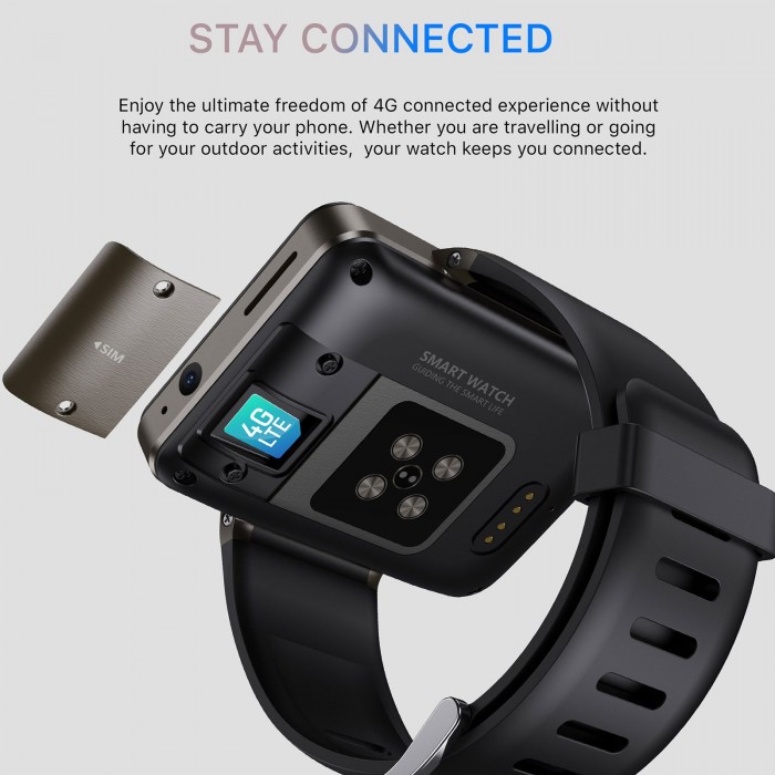 DM101 4G Smartwatch integrates with Pedometer, Heart Rate Tracker, Message Reminder, Music Playback, Calendar, Dial Call, Push Message, Alarm Clock, Answer Call, Date & Time, Camera, Sound Recorder and Browser. Android 7.1, MTK6739 Quad-core CPU, 1GB RAM+16GB ROM or 3GB RAM+32GB ROM optional, BT & WiFi supported, meet all your needs. This smartwatch will bring you much fun and convenience.