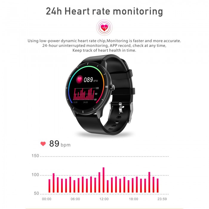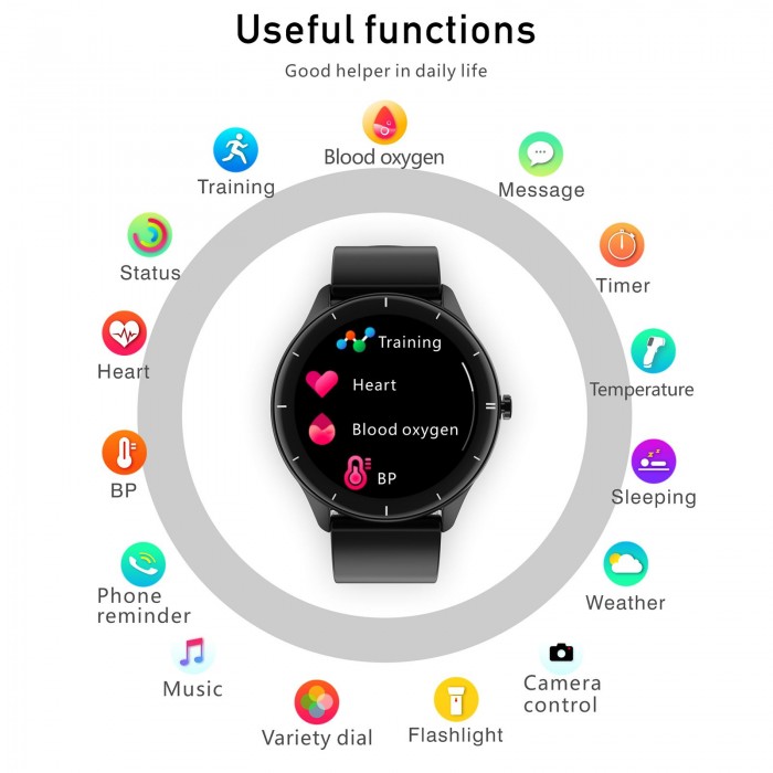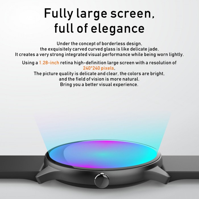 1.28-inch color touch screen can achieve a variety of operations. Screen brightness can be adjusted. A variety of watch dial time display are adjustable.
