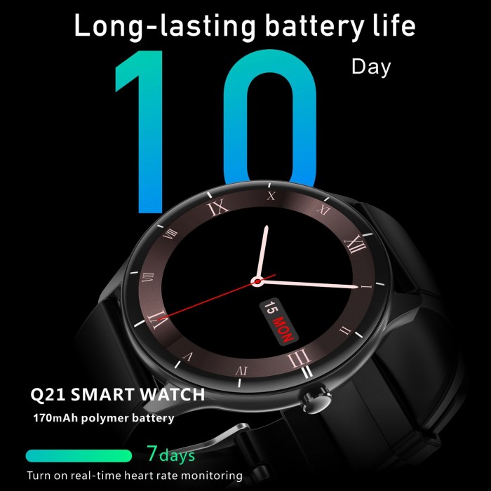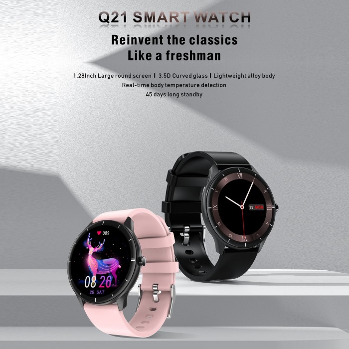 Q21 smart band is a wearable smart device. It features with body temperature detection, heart rate/oxygen/blood pressure monitoring, call alert, message push, sleep monitoring, IP68 waterproof, BT5.0, sedentary reminder, music control, optional sports modes, etc. Through this bracelet, you can record real-time data in daily life, and synchronize these data with mobile phones or tablets to guide the healthy living.