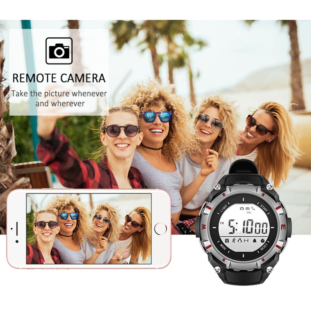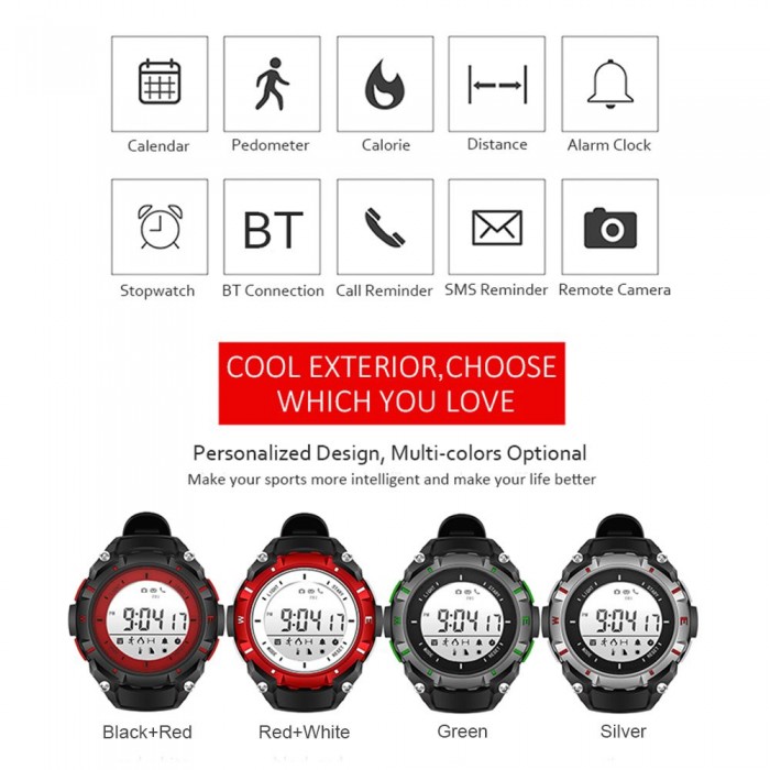 This is a multi-function smartwatch, which can make your sports more intelligent and make your life better. It supports multiple function modes, like time display, calendar mode, steps record, calorie consumption, distance record, alarm clock, stopwatch, temperature display, altitude pressure and UV index. What's more, after connecting it with phone and installing the specialized APP on phone, the watch can realize more functions, such as, call reminder, message reminder, remote camera, etc. Suitable for IOS 8.0 and above or for Android 4.4 and above, and it supports BT 4.0.