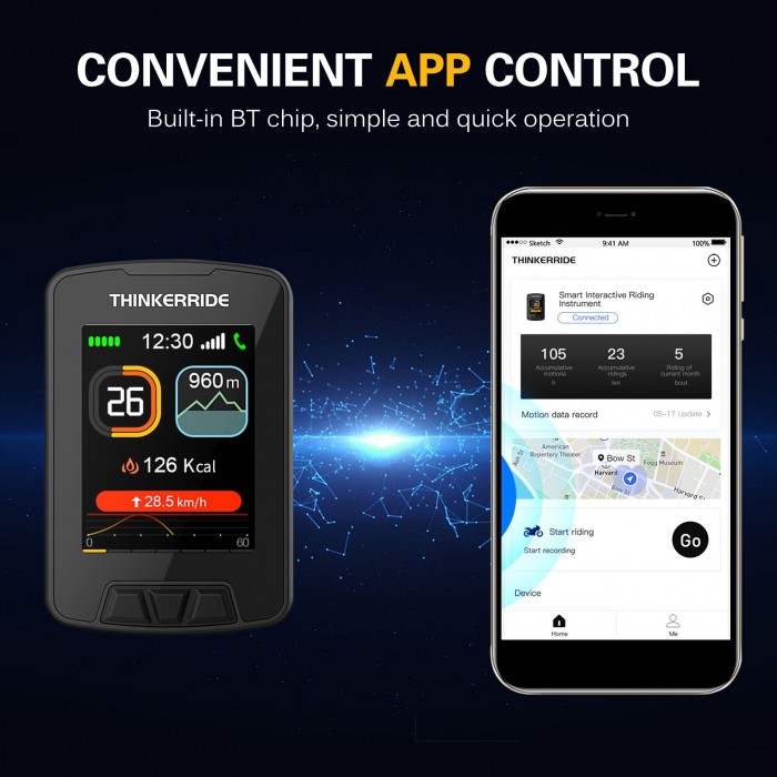 Not only can this wireless bicycle computer accurately tracks your riding activity (current/average/maximum speed, riding time, trip distance, etc), but also positions accurately the location of your riding. The large color screen makes it easier to read the data at any time and any angle. What's more, you can control the bike computer and upload your riding data to your cellphone by BT. Perfect cycling partner for biking enthusiasts.