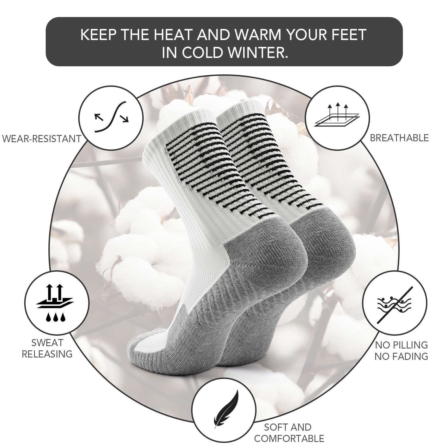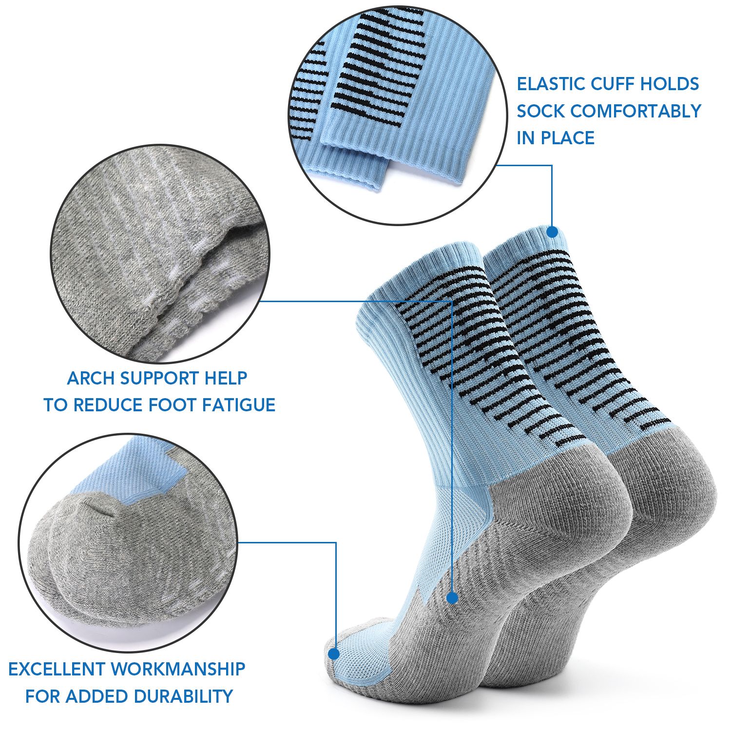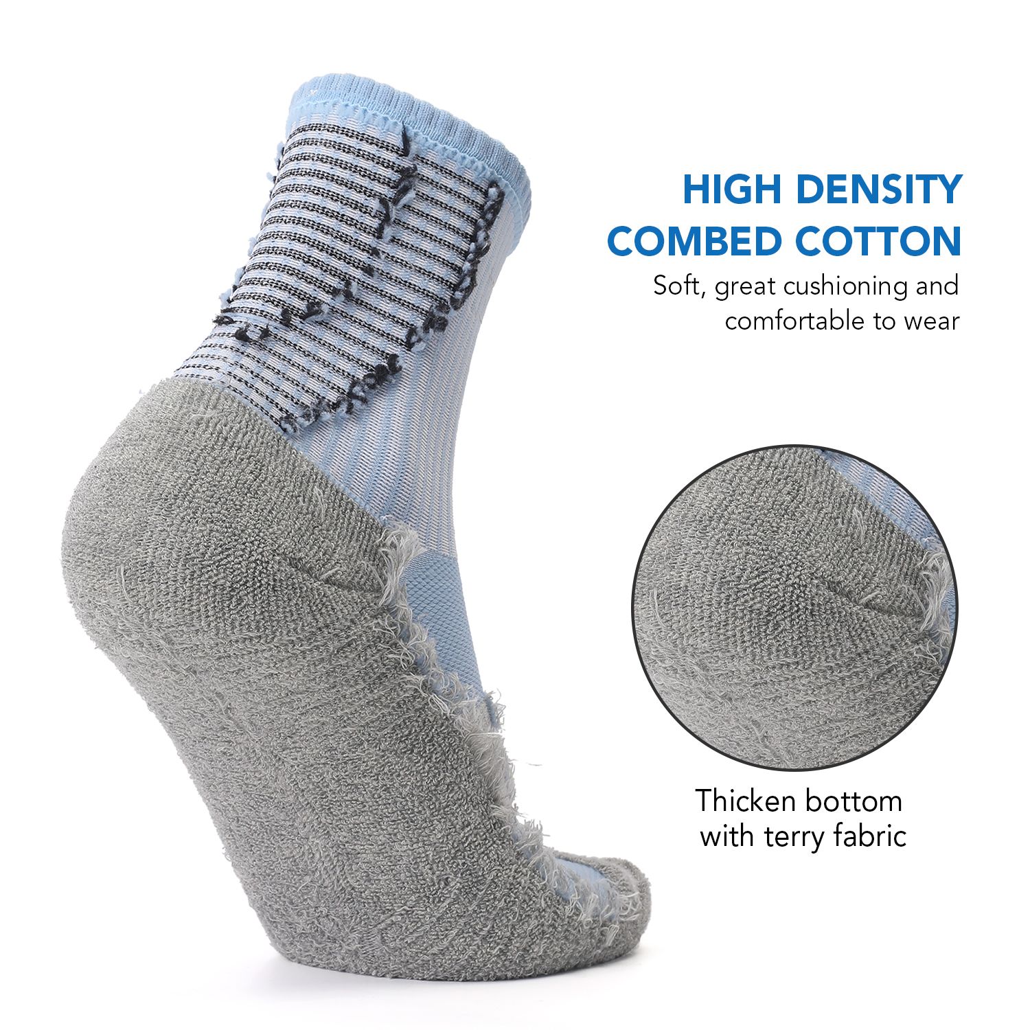 These socks are made of breathable, moisture-wicking material, keep feet cool and one size fits all.