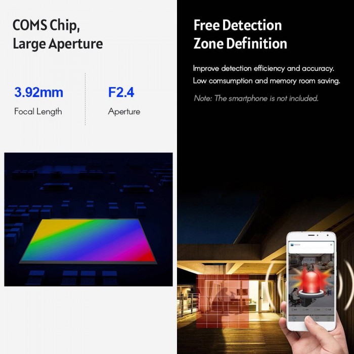 [Night Vision & Motion Detection] With infrared night vision function, support define detection zone freely, when the motion is detected in the zone, the camera will record the video automatically, saving memory room and improving detection efficiency.