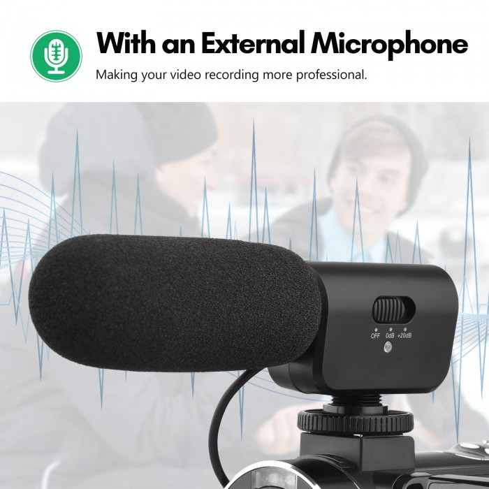 【More Features】With a hot shoe mount for connecting external microphone or LED video light, a standard 1/4 inch thread for mounting the camera to tripod stand; comes with a remote control for more flexible operation, 2pcs batteries for longer working time, and a external microphone for more professional video recording.
