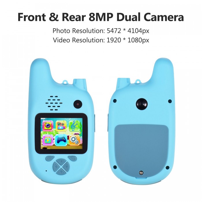 8MP Dual Lenses & Functional Button: Dual camera lenses enable kids to take photos and videos of their own and friends. Functional button is convenient to control for children.