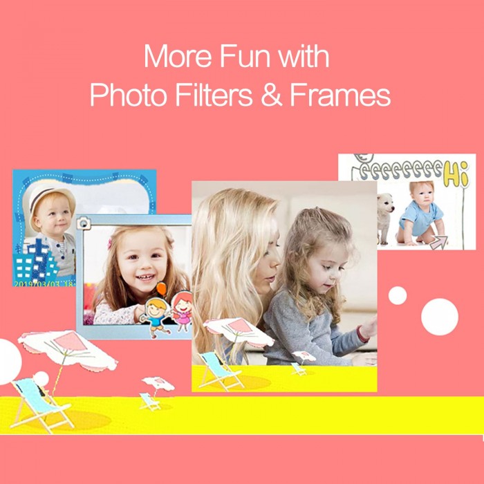 More Functions Happier Growth: Timer function, auto-focusing, photo filters and frames and multiple photo imaging ways make the camera a useful and good companion for kids.