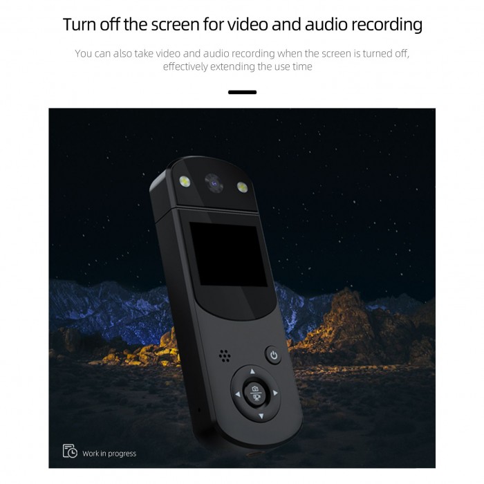 The built-in 200mAh polymer battery, once a full charged, can work for 40-60min. The video and audio can still record if the IPS True HD screen turn off, which can effectively extending the use time.