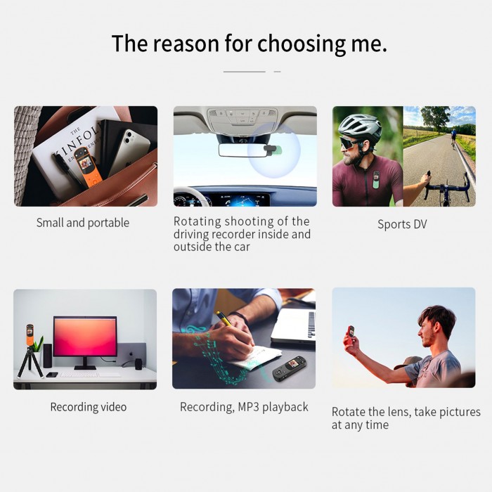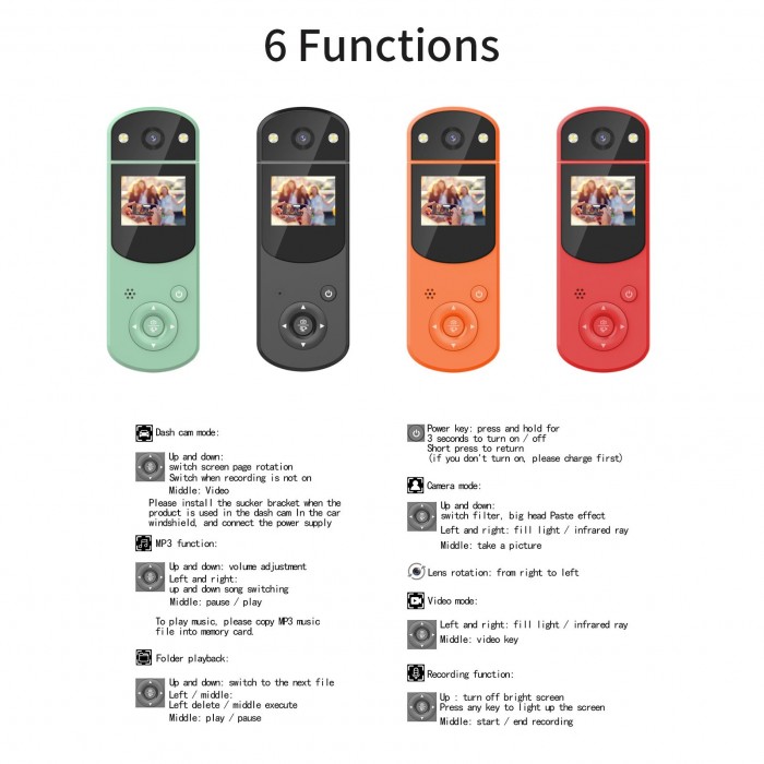Portable and lightweight design, only 180 grams, you can carry it in your pocket or bag. The mini camera can be a MP3 player as well. A perfect Christmas gift for your friends, kids and parents.