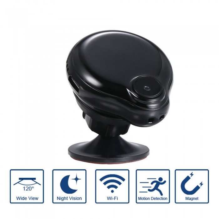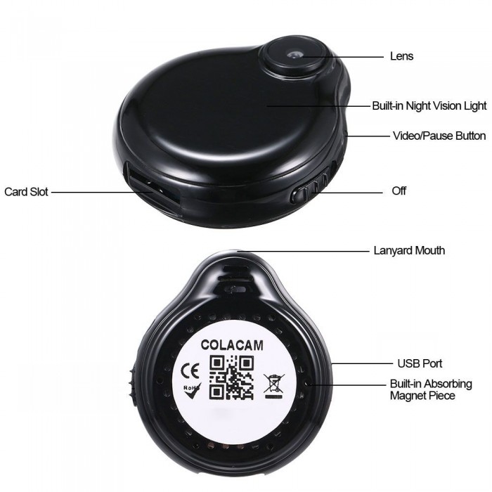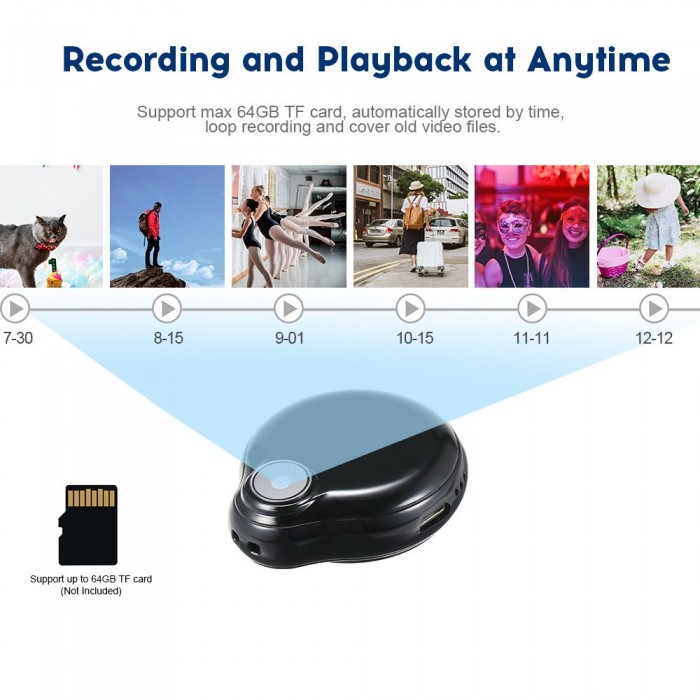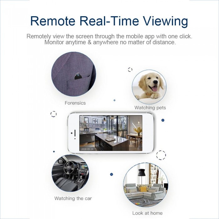 This mini WiFi camera is extremely small and compact. Built-in WiFi hotspot, gives you the real time view through APP. With special wearable design, you could clip it on bag, stick on any surface.