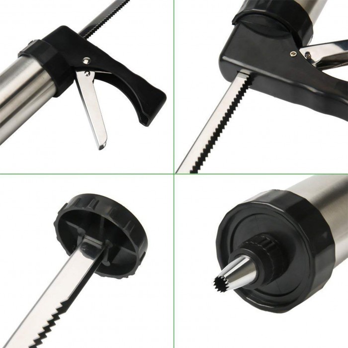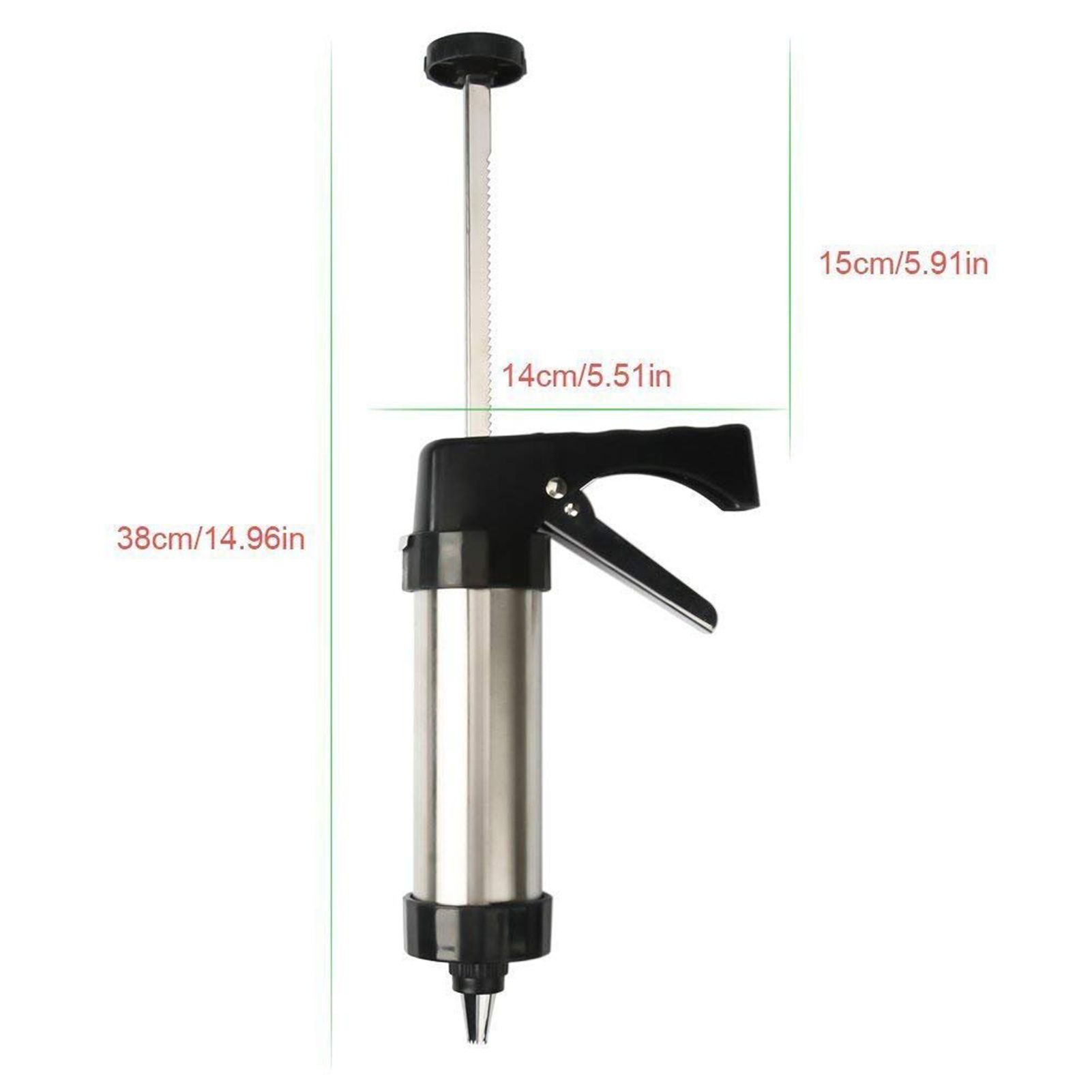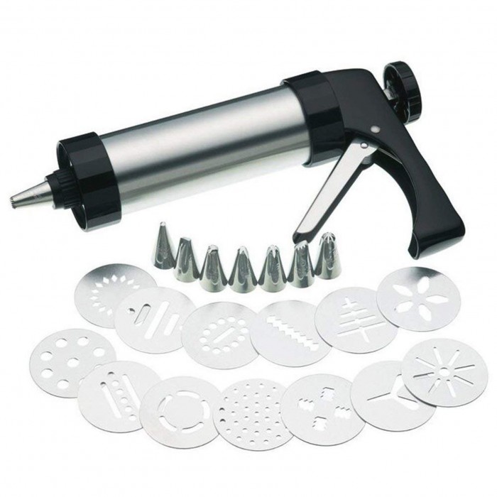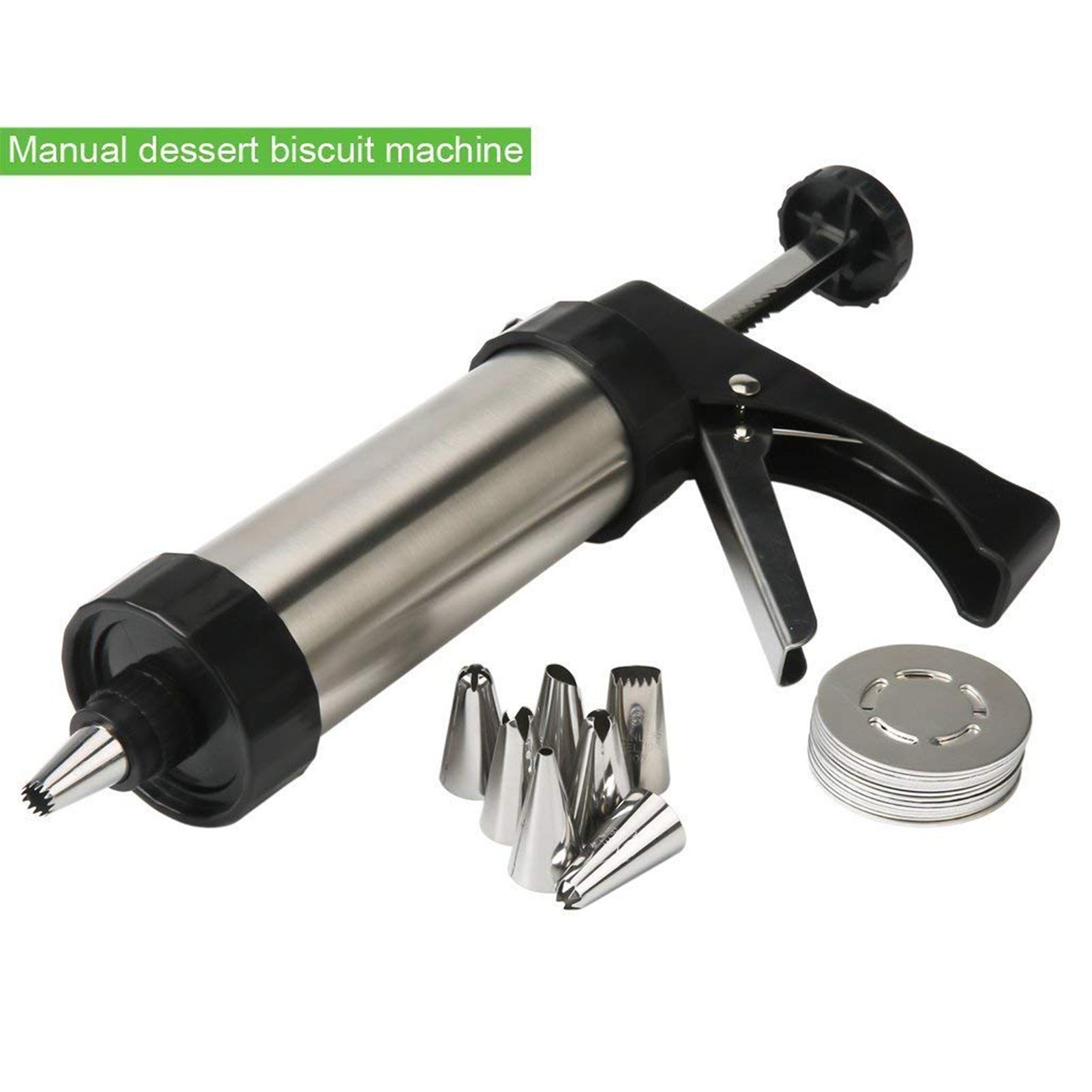 The cookies press machine material is food-grade stainless steel, non-toxic, tasteless, heat and cold resistant, can contact with food directly, manual operation, multiple specifications decoration mould, simple and easy to replaceable, practical and deliate kitchen bake tool.