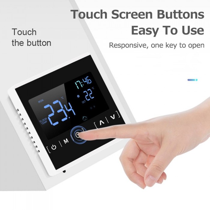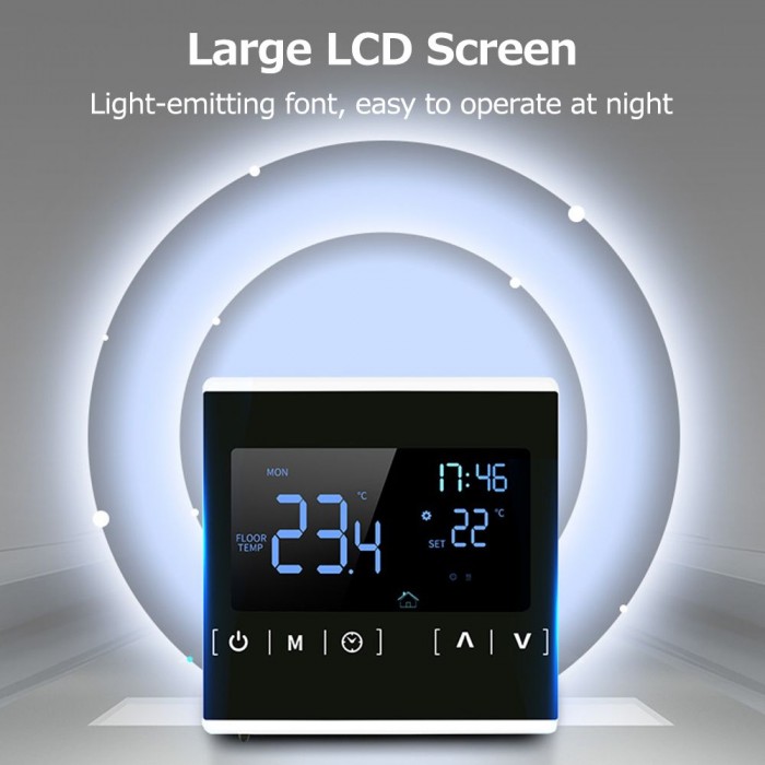 3. This thermostat uses a large LCD display, the fonts will glow, and you can see clearly at night. The touch buttons are sensitive and responsive, and can be adjusted with a touch of the screen, bringing a comfortable use experience and