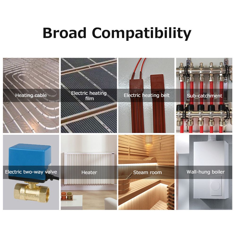 5. This thermostat has a wide range of applications, suitable for heating cables, electric heating films, electric heating belts, sub-water collectors, electric two-way valves, heaters, steam rooms, wall-hung boilers, etc.