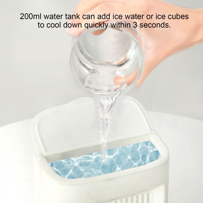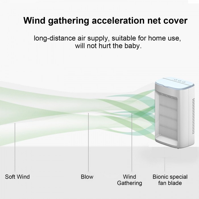 Mini desktop air conditioning fan, three-speed spray fan mode, fast circulation of indoor air, reduce the temperature.